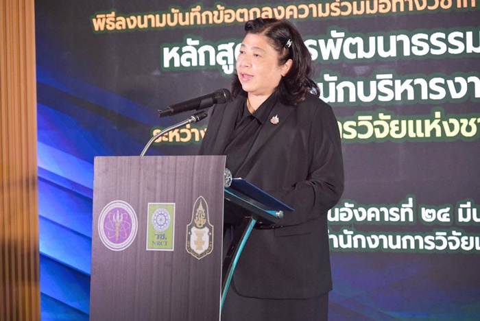 โดยหลักสูตรการพัฒนาธรรมาภิบาลและจริยธรรมสำหรับนักบริหารงานวิจัยมืออาชีพภายใต้บันทึกข้อตกลงฉบับนี้ จะมุ่งเชื่อมโยงหลักการสู่การปฏิบัติผ่านการวิเคราะห์สถานการณ์จริง การแลกเปลี่ยนประสบการณ์ และกรณีศึกษา เพื่อพัฒนานักบริหารงานวิจัยให้เป็นมืออาชีพ ควบคู่กับการยึดมั่นในธรรมาภิบาลและจริยธรรม อันจะส่งผลต่อการยกระดับคุณภาพระบบวิจัยของประเทศให้มีความโปร่งใส คุ้มค่า และได้รับความเชื่อมั่นจากสังคมทั้งในระดับประเทศและนานาชาติ
