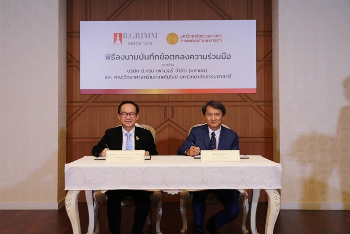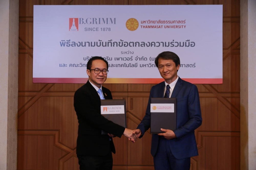 บี.กริม เพาเวอร์ จำกัด (มหาชน) และ มหาวิทยาลัยธรรมศาสตร์ โดยคณะวิทยาศาสตร์และเทคโนโลยี ร่วมลงนามบันทึกความเข้าใจ (MOU) ในการร่วมมือกันศึกษาวิจัยและพัฒนาเทคโนโลยีด้านวิศวกรรมศาสตร์และด้านวิทยาศาสตร์ เพื่อต่อยอดและพัฒนาโครงการพลังงานทดแทน รวมถึงร่วมส่งเสริม สนับสนุน และพัฒนาบุคลากรให้มีองค์ความรู้และทักษะด้านการวิจัยเพื่อสร้างนวัตกรรมพลังงานสะอาดให้กับประเทศในอนาคต