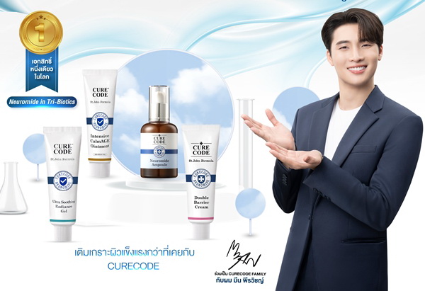 CURECODE นวัตกรรมสกินแคร์สำหรับผิวบอบบางและไวต่อการระคายเคือง ส่งตรงจากเกาหลี โดยแบรนด์มุ่งมั่นที่จะสร้างความเปลี่ยนแปลงในวงการสกินแคร์ด้วยแนวคิด “Skin-Biome Science” ผสานความลับจากธรรมชาติเข้ากับวิทยาศาสตร์ พร้อมคว้า “มีน พีรวิชญ์ อรรถชิตสถาพร” นักแสดงหนุ่มจากช่อง 3 สู่พรีเซนเตอร์แบรนด์ สะท้อนไลฟ์สไตล์สู่กลุ่มเป้าหมาย โดย CURECODE มีเป้าหมายขยายตลาดสู่ระดับนานาชาติ โดยเฉพาะในสหรัฐอเมริกา ด้วยจุดแข็งของผลิตภัณฑ์ที่ปลอดภัยสำหรับทุกคนในครอบครัว ดูแลให้ผิวแข็งแรงจากภายในเพื่อผิวสุขภาพดีอย่างยั่งยืน ผ่านการทดสอบความปลอดภัยจาก AMA Lab และได้รับสิทธิบัตรการใช้งานระดับนานาชาติ เพื่อมอบประสบการณ์การดูแลผิวที่ดีที่สุด และนำไปสู่คุณภาพชีวิตที่ดียิ่งขึ้นสำหรับผู้ใช้ทุกคน