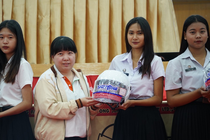 ทางวิทยาลัยต้องขอบคุณ สสส. ที่สละเวลามอบหมวกกันน็อกที่ได้มาตรฐานและสวยงามให้กับวิทยาลัย เพื่อให้เด็ก ๆ ได้นำไปใช้สำหรับขับขี่หรือซ้อนจักรยานยนต์มาเรียน ขอขอบคุณที่ช่วยกันดูแลลูกหลานเยาวชน เพื่อหวังว่านักศึกษาทุกคนจเป็นเยาวชนที่เก่ง ดี มีความสุข และเป็นกำลังให้กับประเทศชาติต่อไป สำหรับในวันนี้หลังได้รับหมวกกันน็อก จะมีการจัดกิจกรรมเพ้นท์หมวก เพื่อสื่อสารโทษพิษภัยของสารเสพติด เหล้า บุหรี่ และนำหมวกกันน็อกไปแจกให้นักศึกษาที่มีความจำเป็นต้องใช้เพื่อเดินทางด้วยรถจักรยานยนต์ต่อไป