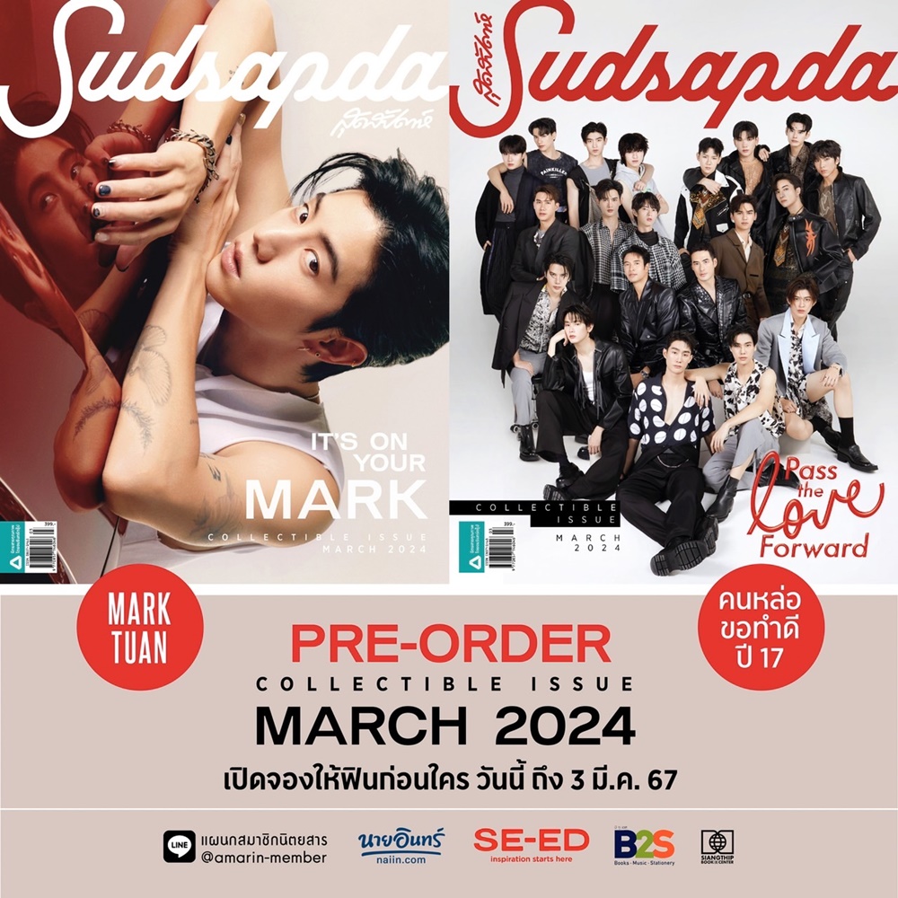 สุดสัปดาห์ฉบับพิเศษ Collectible Issue เดือน มี.ค. 67 ฉลองสุดสัปดาห์ครบรอบ 41 ปี และโลโก้แบรนด์แบบใหม่ ฉบับนี้สาวๆ มีใจสั่น ด้วยปกสองด้าน ที่ชาวอากาเซห้ามพลาด เพราะ สุดสัปดาห์ ภายใต้ Amarin Media & Event ในเครืออมรินทร์กรุ๊ป พา MARK TUAN กลับมาขึ้นปกอีกครั้งตามคำเรียกร้อง