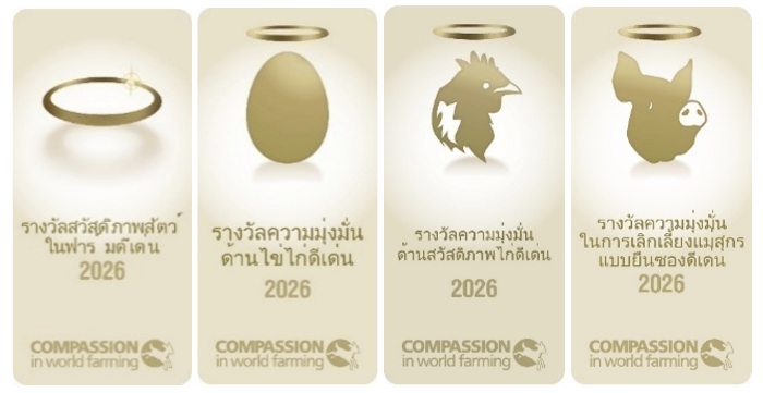 CIWF ขอเชิญชวนบริษัทไทยที่ดำเนินธุรกิจเกี่ยวกับไก่ไข่ ไก่เนื้อ และสุกร สมัครเข้าร่วมรางวัล รางวัลความมุ่งมั่นด้านไข่ไก่ดีเด่น (Good Egg), รางวัลความมุ่งมั่นด้านไก่ดีเด่น (Good Chicken) และ รางวัลยกย่องด้านการเลี้ยงแม่สุกร (Sow Stall Free) ประจำปี 2569 เพื่อเป็นส่วนหนึ่งของเครือข่ายบริษัทที่ร่วมกันยกระดับสวัสดิภาพสัตว์ในฟาร์ม