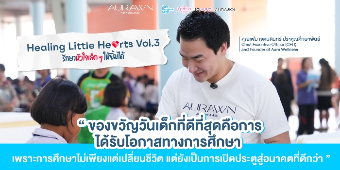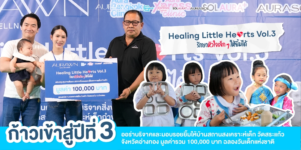 กลับมาอีกครั้งกับโครงการ “Healing Little Hearts รักษาหัวใจเล็กๆ ให้ยิ้มได้” โดย Aura Wellness บริษัทแม่ของ Aura Bangkok Clinic, Aura Xpress Clinic, SOLAURA, และ AURASOL Wellness & Spa ในปี 2569 นับเป็นปีที่ 3 ที่ออร่าเดินหน้าส่งต่อรอยยิ้ม ขยายโอกาสให้กับเด็กและเยาวชนในสถานสงเคราะห์เด็กวัดสระแก้ว จังหวัดอ่างทอง โครงการนี้ยังคงเดินหน้าต่อ เพราะทีมผู้บริหาร Aura Wellness ทุกท่าน เล็งเห็นถึงความสำคัญของการส่งต่อโอกาส และอนาคตของเด็กๆ ในพื้นที่ห่างไกล จึงเดินหน้าสานต่อโครงการที่จะช่วยเสริมสร้างคุณภาพชีวิตของเด็กและเยาวชนที่จะเติบโตไปเป็นกำลังสำคัญของประเทศในอนาคต