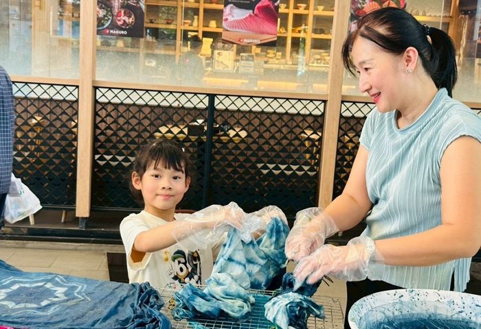 ภายในงานมีกิจกรรมเวิร์คชอปที่น่าสนใจ อย่าง การมัดย้อมผ้าพันคอสไตล์ญี่ปุ่น ด้วยเทคนิคชิโบริ ซึ่งเป็นศิลปะการสร้างลวดลายบนผ้าสไตล์ญี่ปุ่นโบราณ ใช้วิธีการพับ มัด เย็บ หรือบิดผ้าเพื่อกันสีไม่ให้ซึมเข้าไปในส่วนที่ต้องการ เสน่ห์ของเทคนิคอยู่ที่ความประณีตและลวดลายที่เป็นเอกลักษณ์เฉพาะตัว โดยมี 5 เทคนิคชิโบริยอดนิยมสำหรับผ้าพันคอ สามารถเลือกเทคนิคที่ชอบเพื่อสร้างลายที่ต้องการได้ อาทิ 1. อาราชิ ลายสายฝนหรือพายุ การพันผ้าทแยงมุมรอบท่อหรือแกนไม้ แล้วใช้เชือกมัดรูดผ้าให้ย่น ลายที่ได้จะเป็นเส้นขีดแนวทแยง 2. อิตาจิเมะ หรือลายเรขาคณิต การพับผ้าเป็นทบๆ คล้ายพัดแล้วใช้ไม้แผ่นเรียบหรือตัวหนีบหนีบผ้าไว้ สีจะซึมเข้าไปเฉพาะตามขอบที่ไม่ได้ถูกหนีบ 3. ลายคุโมะ ลายก้อนเมฆหรือแมงมุม โดยการรวบผ้าเป็นกระจุกเล็กๆ แล้วใช้หนังยางหรือด้ายมัดให้แน่นเป็นปล้องๆ 4. นุอิ หรือลายเย็บรูด เป็นเทคนิคที่ต้องใช้เข็มและด้ายเย็บเนาผ้าเป็นลวดลายต่างๆ เช่น ดอกไม้ หรือใบไม้  ก่อนจะดึงด้ายให้ผ้าตึงย่นก่อนนำไปย้อม และ 5. คาโนโกะ หรือลายจุดวงกลม คล้ายการมัดย้อมทั่วไปแต่เน้นความละเอียด มัดผ้าเป็นปุ่มเล็กๆ กระจายตัวทั่วผืนผ้า