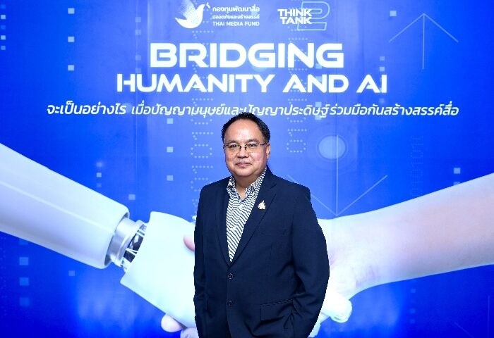 ดร.ธนกร ศรีสุขใส ผู้จัดการกองทุนพัฒนาสื่อปลอดภัยและสร้างสรรค์ กล่าวว่า “ในปัจจุบัน เทคโนโลยี AI [Artificial intelligence] หรือ ปัญญาประดิษฐ์เข้ามามีบทบาทในชีวิตประจำวันและถูกนำมาใช้ในการทำงาน มากขึ้น กองทุนสื่อ ได้เล็งเห็นถึงความสำคัญต่อการพัฒนาศักยภาพบุคลากรด้านสื่อ จึงจัดงานเสวนา “Bridging Humanity and AI” จะเป็นอย่างไร เมื่อปัญญามนุษย์และปัญญาประดิษฐ์ร่วมมือกันสร้างสรรค์สื่อ เพื่อเตรียมความพร้อมให้บุคลากรในวงการสื่อได้ปรับตัว เสริมความรู้ ความเข้าใจ และสามารถใช้งาน AI ได้อย่างมีประสิทธิภาพ ซึ่งจะส่งผลดีต่อภาพรวมของเศรษฐกิจและสังคมไทยในระยะยาวต่อไป